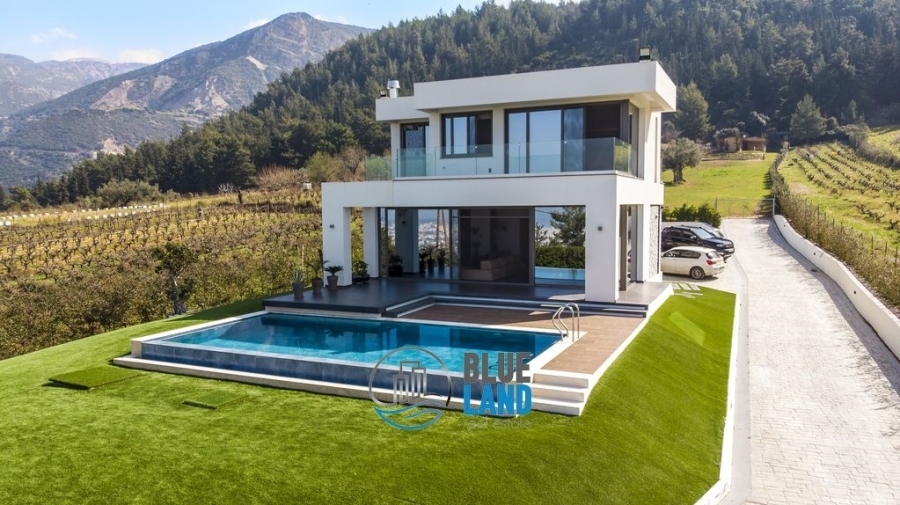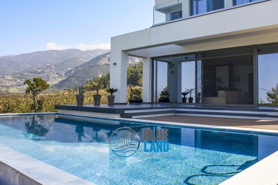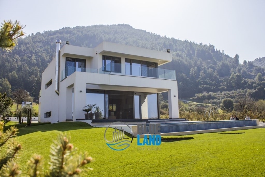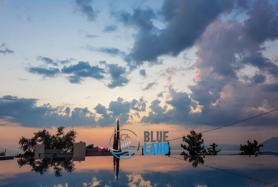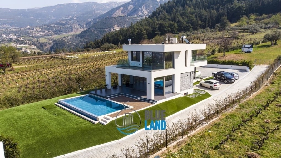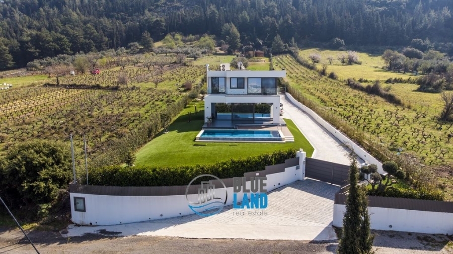 Πάτρα, Πετρωτό (πλησίον του οινοποιείου Αχάια Κλάους) : Διατίθεται προς πώληση βίλα υψηλής αρχιτεκτονικής σχεδίασης και κατασκευής, συνολικού εμβαδού 292 τ.μ., η οποία αναπτύσσεται σε 3 επίπεδα και αποτελείται από 4 Υ/Δ εκ των οποίων το 1 είναι master, κουζίνα, ευρύχωρο και φωτεινό καθιστικό με μεγάλα ανοίγματα και τζάκι, τραπεζαρία, 2 Μπάνια, WC, αίθριο και εξώστες. Διαθέτει ατομική θέρμανση με αντλία θερμότητας, κλιματισμό, κουφώματα αλουμινίου, διπλά τζάμια, σίτες, πόρτα ασφαλείας και συναγερμό. Η βίλα εδράζεται εντός οικοπέδου επιφάνειας 5.023 τ.μ. το οποίο είναι περιφραγμένο και διαμορφωμένο τόσο με κήπους καλλωπιστικού ενδιαφέροντος πέριξ της οικίας όσο και με διαμορφωμένα κτήματα και επίπεδα. Προσφέρει αμφιθεατρική και απρόσκοπτη θέα προς το κέντρο της Πάτρας, τον Πατραϊκό κόλπο και το Ιόνιο Πέλαγος. Διαθέτει πισίνα 45 τ.μ., οργανωμένο σταύλο με άλογα, χώρο καθιστικού και θέσεις στάθμευσης. Τιμή : 900.000 ευρώ - Blueland real estate, Tηλ. : 2611811812, email: [email protected]