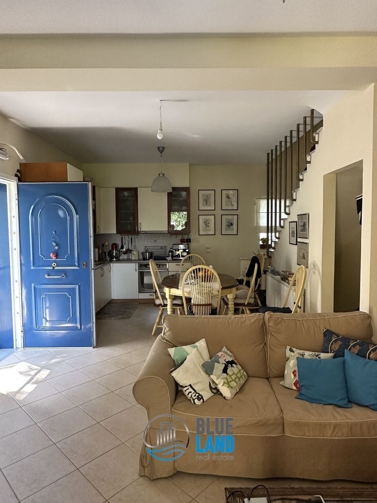 Three-level maisonette of 131 sq.m. for sale. in very good condition, in Logos Sympolitias. The property is located on a plot of 360 sq.m. and has a sea view. Year of construction is 2002. It has a basement of 55 sq.m. consisting of 2 bedrooms, a bathroom, an auxiliary kitchenette and a storage room. The ground floor is 40 sq.m. and has a kitchen, a living room with a fireplace and a terrace, while the first floor is 36 sq.m. and consists of 2 bedrooms, a bathroom and a large terrace. The maisonette is fully furnished. Internally, it has double glazing, aluminum frames, electrical appliances and solar.Outside, it has 2 terraces, garden and parking. It also has an internal and external alarm. Access to the sea is by a private road lined with shady plane trees, and the distance is only 30 meters. The privileged location of the property in a quiet location, just a minute away from the sea on foot makes it ideal for residence as well as investment. Price: 220.000€. Blueland real estate, Tel: 2611811812, email: [email protected]