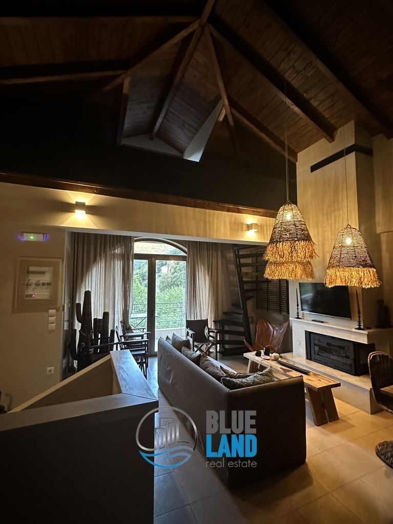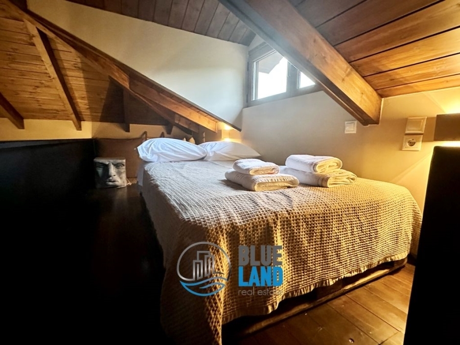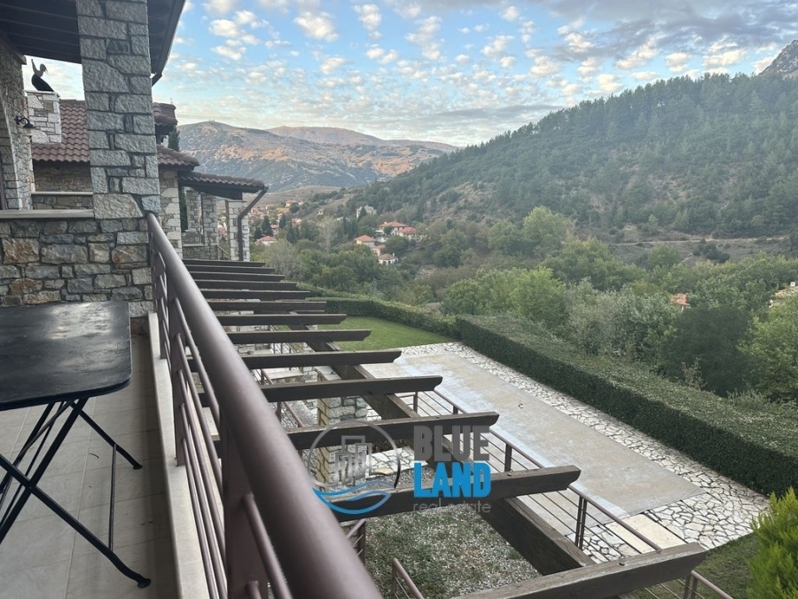 A luxury maisonette of 110 sq.m. is available for sale, in a complex of four maisonettes with a shared pool in Kalavryta. The maisonette is located on a plot of six acres, with an unlimited view and very well built. In addition, the property corresponds to a plot of 500 meters, tangent to it for exclusive use with a contract. The maisonette internally consists of two levels - the first level is the ground floor and has a kitchen, a living room with an energy fireplace, a dining room and a WC. In this space there is an internal staircase that leads to a loft, with capacity for 2 people with a double bed.The second level is basement and includes 3 bedrooms and a bathroom. The basement, due to the altitude difference of the plot, is like a ground floor and has direct access to the pool and the garden. The present luxury house is made of stone and is given furnished. It has aluminum frames, double glazing, independent heating and an energy fireplace. Externally, the property includes a shared swimming pool, garden and one open parking space. It is bright and airy and an investment, while it can be used for renting on AIRBNB or BOOKING. It is located in a NATURA area, where nothing else can be built, which makes it special. Price: 240.000€. Blueland real estate, Tel: 2611811812, email: [email protected]