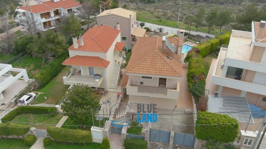 Rafina, Drafi: Available for sale villa of total area 212 sq.m., which is developed on 2 levels. The ground floor consists of a spacious living room, kitchen, bathroom, dining room and storage room. On the first floor there are three bedrooms, a bathroom and a WC. The villa is set within a plot of 400 sq.m. which has been landscaped into an excellent garden with lawn, trees, swimming pool, barbeque, and sitting area. It has autonomous oil heating, aluminum windows, security door, garage. Price: 580.000€. Blueland real estate, Tel: 2611811812, email: [email protected]