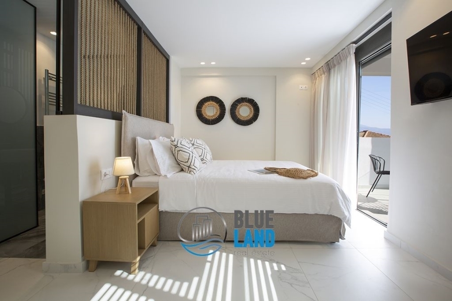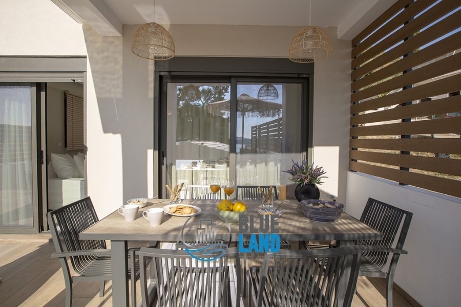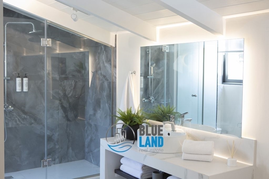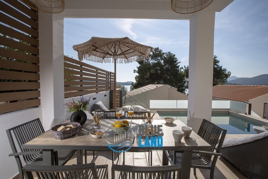 Perigiali: Fully furnished, luxurious 170 sq.m. maisonette for sale, spread over three levels and combining contemporary design with absolute comfort. On the ground floor, there is a spacious living room with large windows offering unobstructed views, a modern and fully equipped kitchen, and a comfortable dining area. A glass staircase leads to the first floor, where there are two bedrooms with king-size beds and bathrooms with walk-in showers. On the lower level, there is a second living room, kitchen, bathroom, and third bedroom. The outdoor area includes a private pool with sun loungers, dining area, and BBQ. An ideal choice for a permanent or holiday home, offering luxury, privacy, and breathtaking views of the Ionian Sea. Also recommended as an investment. Price: €700,000. Blueland real estate, Tel. Contact: 2611811812, email: [email protected]