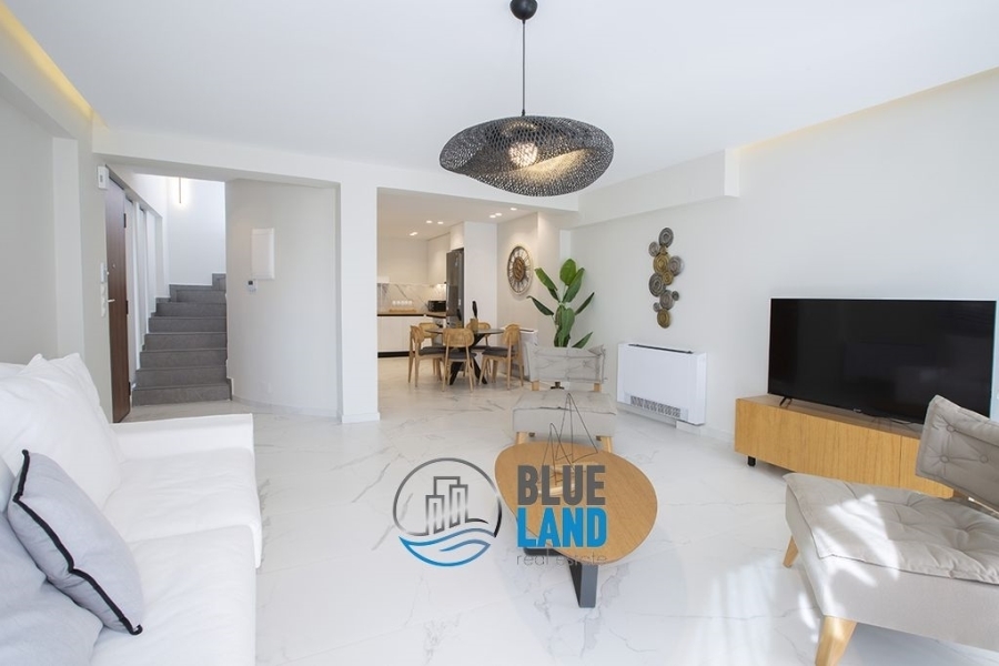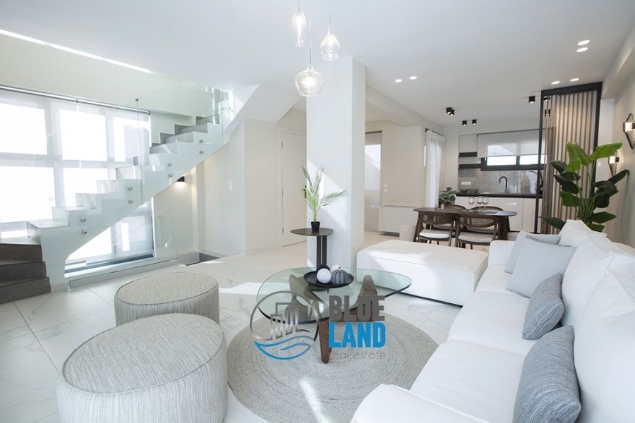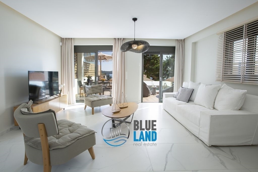 Perigiali: Two modern, fully furnished luxury maisonettes of 170 m² and 145 m² respectively are available for sale. Each maisonette is spread over three levels and combines modern design with absolute comfort. On the ground floor, there is a spacious living room with large windows offering unrestricted views, a modern and fully equipped kitchen, and a comfortable dining area. A glass staircase leads to the first floor, where there are two bedrooms with king-size beds and bathrooms with walk-in showers. On the lower level, there is a second living room, kitchen, bathroom, and third bedroom. The outdoor area includes a private pool with sun loungers, dining area, and BBQ. An ideal choice for a permanent or holiday home, offering luxury, privacy, and breathtaking views of the Ionian Sea. Also recommended as an investment. Price: €1,200,000. Blueland real estate, Tel. Contact: 2611811812, email: [email protected]