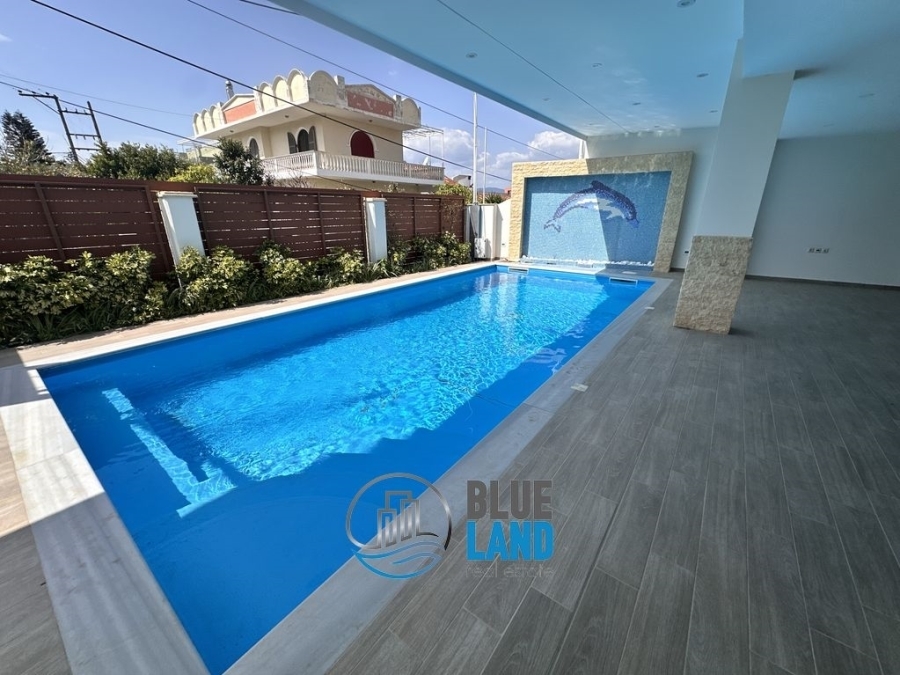 Rio, Agios Vasileios: A luxurious, newly built corner house with a total area of 315 sq. m., spread over 3 levels, is available for sale. The residence features a total of 5 bedrooms, 2 kitchens, and 2 living rooms, as well as 3 bathrooms and an additional WC. Additionally, it includes a storage room, a playroom, a beautiful garden with a BBQ, a swimming pool, and outdoor parking. The ground floor consists of a living room, kitchen, one bedroom, a bathroom, and a WC. On the same level is a separate space of approximately 45 sq.m., ideal for guests or use as a separate apartment. The semi-basement level, with a total area of 140 sq.m., features 2 bedrooms, a large space that can be used as a playroom or gym, a bathroom, and a storage room. The property features independent heating with a fan coil system, an energy-efficient fireplace, air conditioning, aluminum window frames with double-pane glass, a security door, an alarm system, and a solar water heater. Its location is particularly advantageous as it is close to public transportation stops, schools, and a supermarket. Price: €1,800. Blueland Real Estate, Contact Phone: 2611811812, email: [email protected]